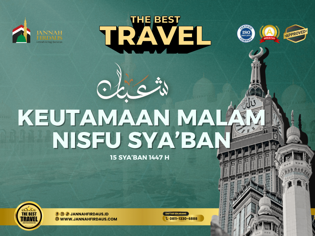 Malam Nisfu Sya’ban bukan hanya tentang doa dan istighfar, tetapi juga tentang niat dan langkah nyata untuk mendekat kepada Allah. Salah satu bentuk pendekatan diri yang paling mulia adalah memenuhi panggilan-Nya ke Tanah Suci, melalui ibadah Umroh dan Haji.
