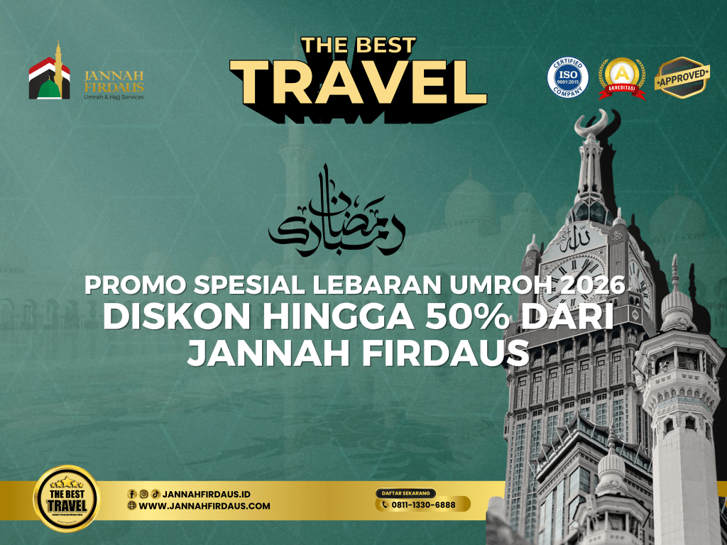 Lebaran adalah waktu yang tepat untuk memulai perjalanan spiritual. Dengan adanya promo besar ini dari Jannah Firdaus, impian beribadah ke Tanah Suci kini semakin mudah dan terjangkau.