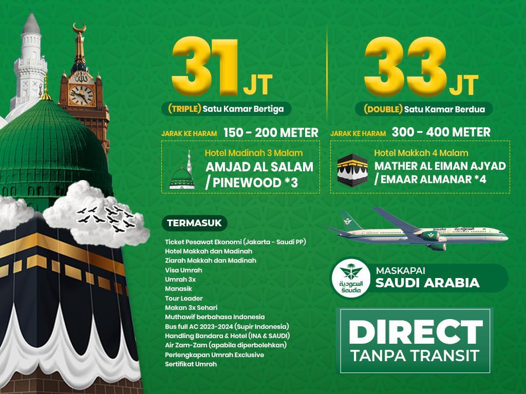 - 30 hari sebelum keberangkatan potongan 100% dari harga paket