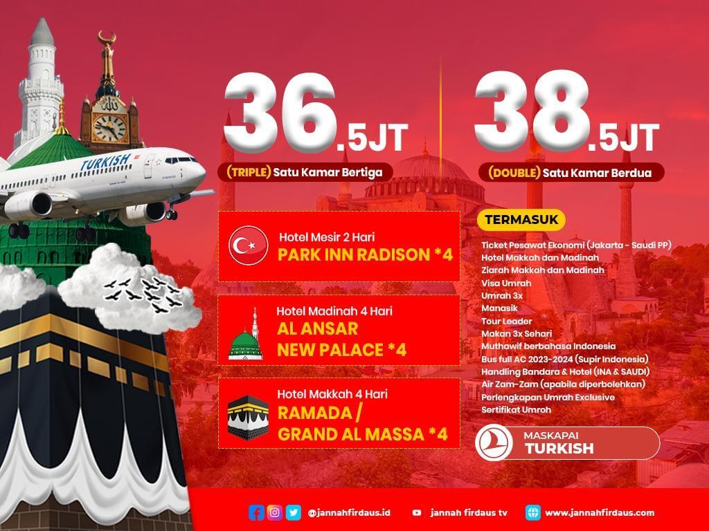 - Pendaftaran 30 hari sebelum keberangkatan wajib pembayaran 100% dari harga paket